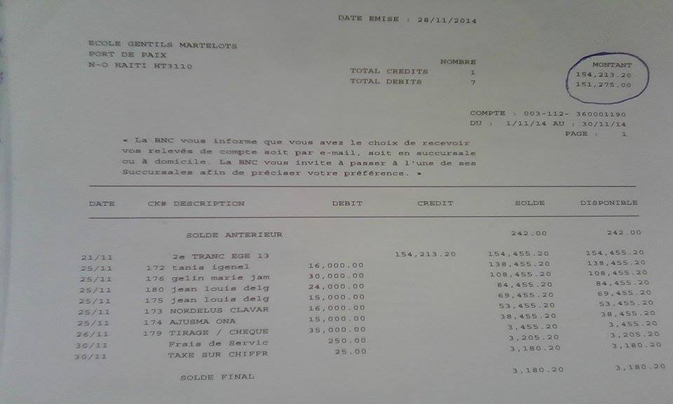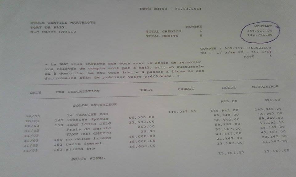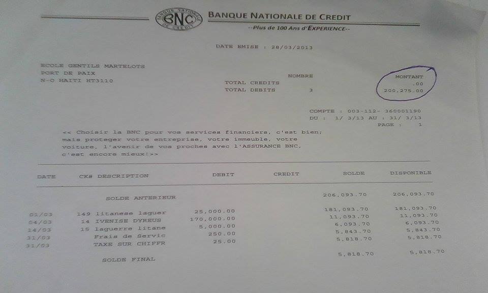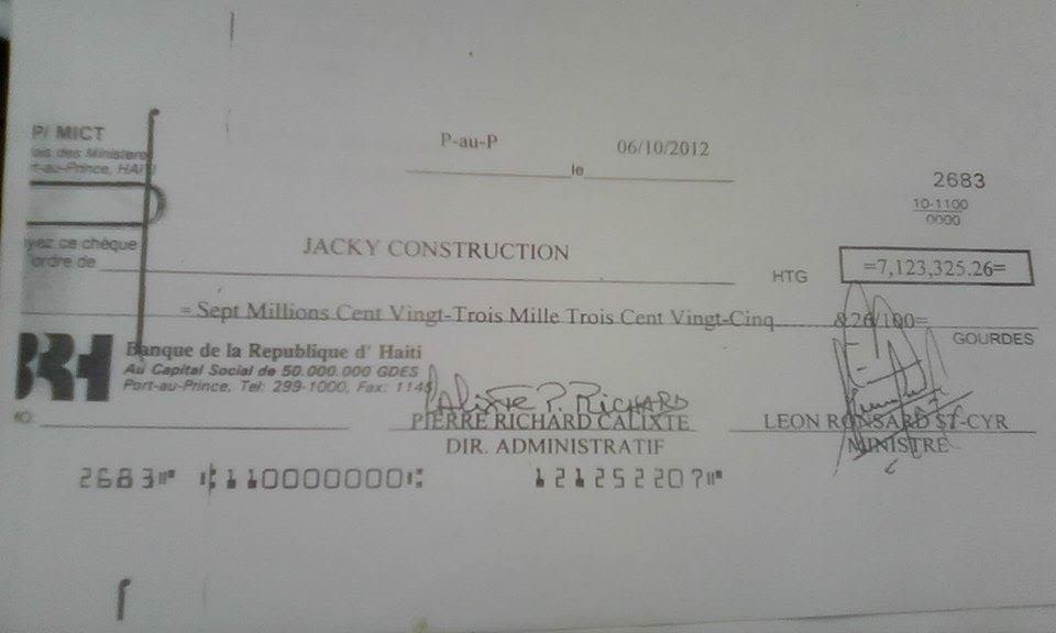 De retour à Port-de-Paix, le représentant de l’exécutif présente plusieurs copies de chèques remis à son accusateur qu’il affirme être un consommateur de drogue, un vice qui peut, d’après lui, entrainer ce qu’il appelle d`un ton ironique « cette folie de l’ingénieur ».