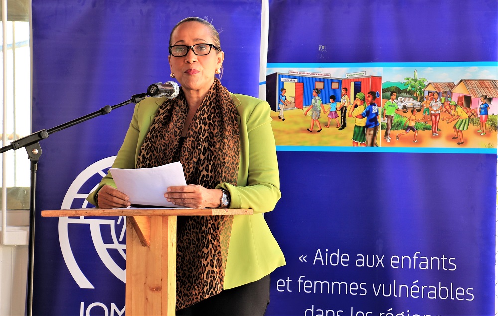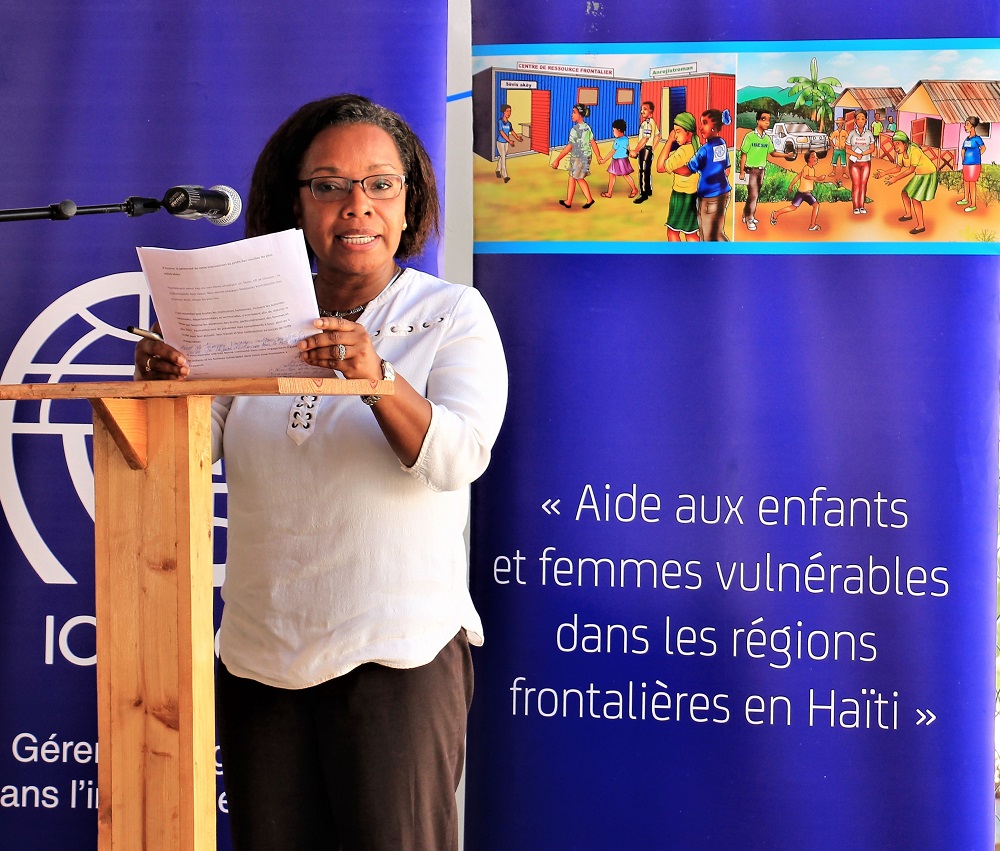 « Le Canada est fier d’appuyer ce projet qui vise l’amélioration et la coordination des mécanismes de références des cas d’enfants et de femmes et filles vulnérables à la frontière, le renforcement des capacités des acteurs étatiques et de la société civile; un meilleur accès aux services pour la réintégration durable des migrants. Remerciements à l’OIM, au Gouvernement Haïtien et aux partenaires du projet »Aide aux enfants et femmes vulnérables dans les régions frontalières en Haïti » pour l’ouverture du CRF à Malpasse » a affirmé Marie Frédérique Roche, Chef de l’Aide Adjoint par intérim et Représentante de l’Ambassade du Canada.