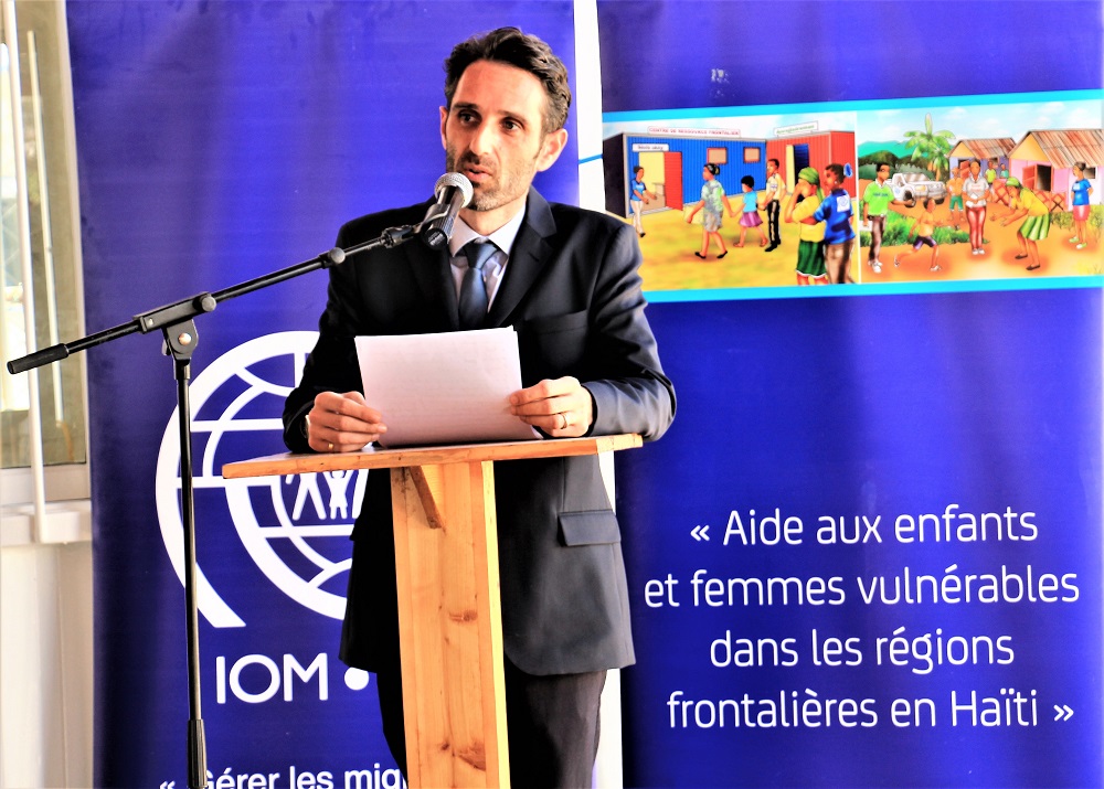 « Je suis content d’inaugurer aujourd’hui le CRF de Malpasse qui va permettre de fournir une assistance coordonnée entre les différents acteurs. Cependant, l’action des acteurs sociaux ne peut avoir de sens et d’impact que si elle est couplée à une gestion efficace de la frontière. En ce sens, le déploiement de la Police aux Frontières et l’Accord de Coopération entre la police, la douane et l’immigration doivent rester une priorité du Gouvernement Haïtien et de ses partenaires internationaux », a déclaré Fabien Sambussy, Chef de Mission de l’OIM en Haïti.