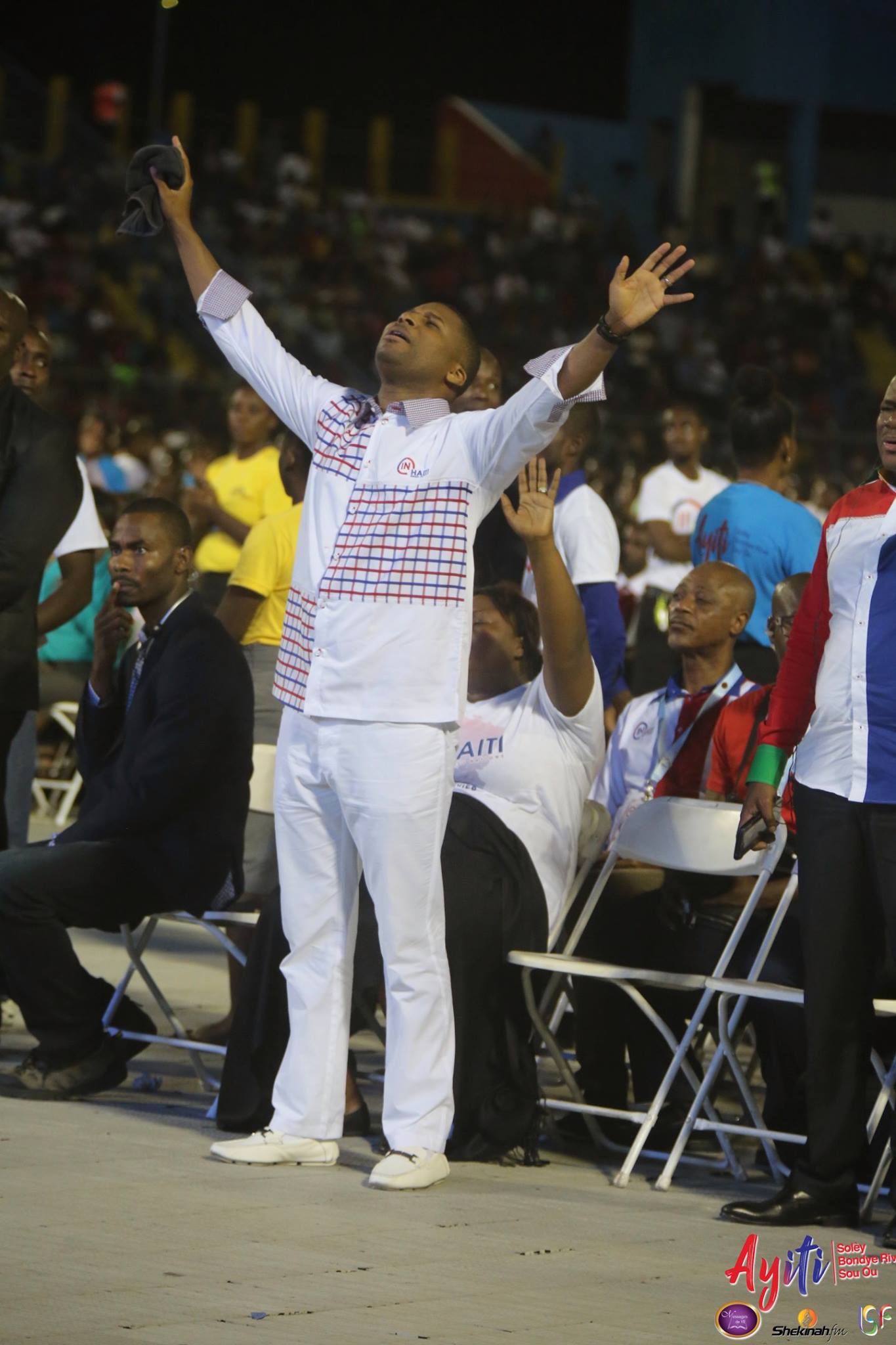 « La gloire de Dieu se lève sur Haïti » a en maintes fois scandé le pasteur Sylvain Exantus accompagné d’une seule voix par la foule immense au stade. Dans son speech, Pasteur Sylvain Exantus a salué « les frères et sœurs de la Cote d’Ivoire, des Etats-Unis et de la France » qui « se rangent autour d’Haïti pour le combat spirituel, pour qu’Haïti puisse retrouver sa voie, sa destinée ».