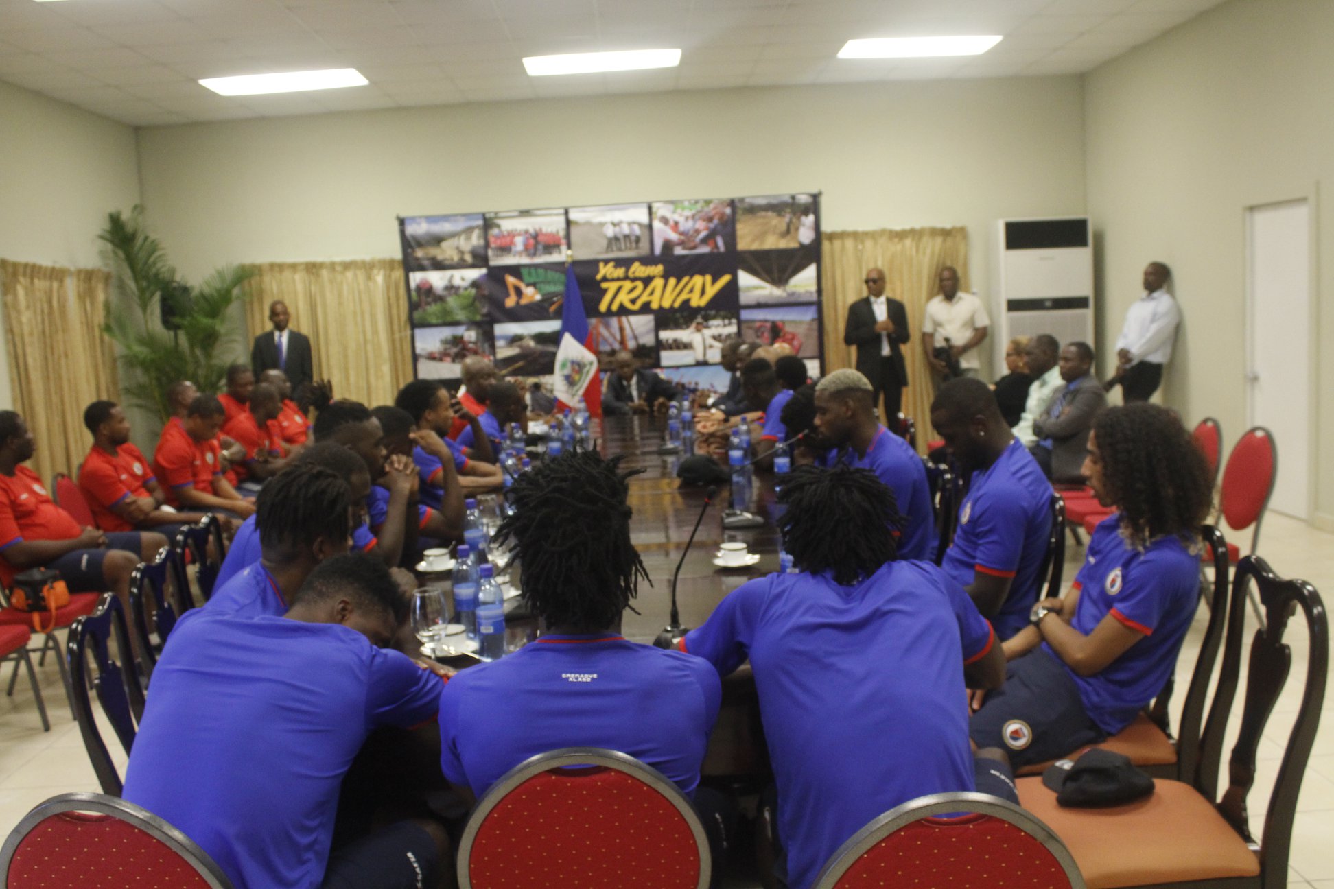 Au Palais National, Jovenel Moïse a demandé au Président de la Fédération de soumettre un budget pour la Ligue des Nations de la Concacaf et a promis aux grenadiers une allocation mensuelle et un passeport diplomatique à chaque international du football haïtien