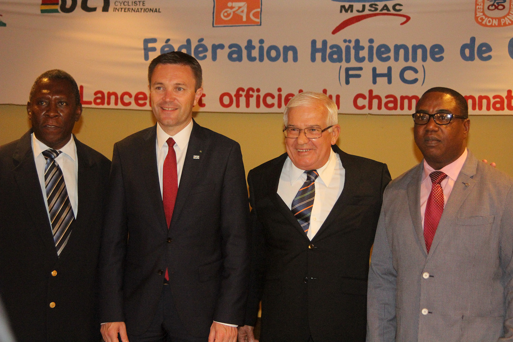 Lappatient est accompagné de Desgrange Dufaide secrétaire général de la fédération haïtienne de cyclisme, Trevor Bailey, président de l’union des cyclistes de la Caraïbes, Alfred Defontis, président du comité régional cycliste de la Martinique, et Philibert Moueza, président du comité de cyclisme de la Guadeloupe.