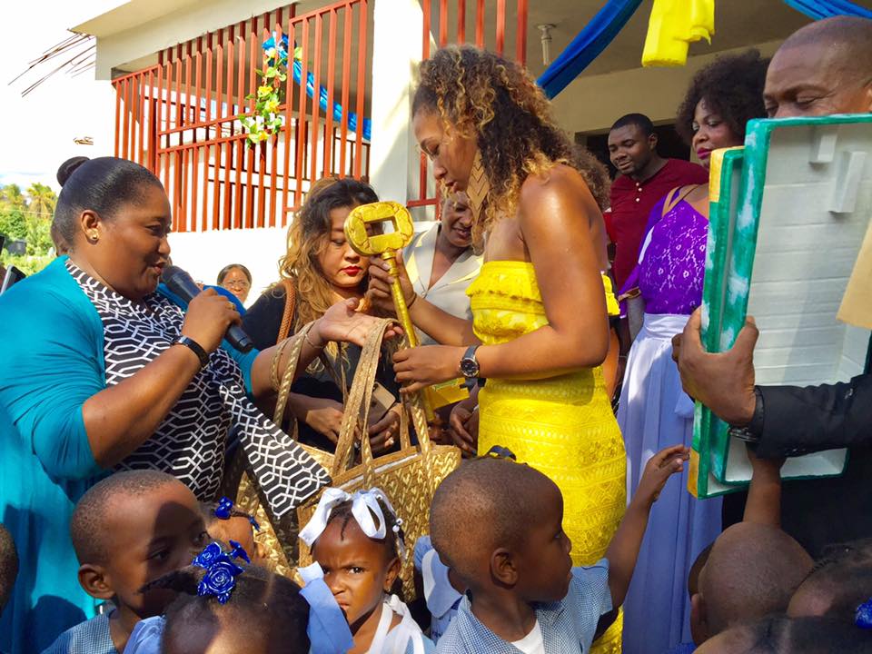 La Mairesse Adjointe de Jacmel, Mme Marie Lourdie César, a remis la clé de la ville à la championne d’Indian Wells et de l’US Open, en la présence de ses parents, des gestionnaires et élèves de l’école, ainsi que de plusieurs journalistes venus accueillir la joueuse.