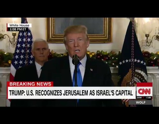 Washington DC, mercredi 6 décembre 2017 ((rezonodwes.com)).-Le président américain a annoncé mercredi en début d’après-midi que « les Etats-Unis reconnaissent officiellement Jerusalem comme