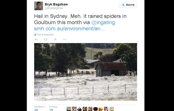 Des millions d’araignées qui tombent du ciel, obscurcissant un instant le soleil avant de fondre sur les habitants d’une bourgade paisible… Ce scénario digne d’un film d’horreur s’est produit au début du mois de mai à Goulburn, en Australie. Un de ses habitants, Ian Watson, raconte : « Tout était recouvert de petites araignées noires et quand j’ai levé les yeux vers le soleil, on aurait dit un tunnel de toiles d’araignées qui s’élevait sur plusieurs centaines de mètres dans le ciel. » Et d’ajouter : « Impossible de sortir sans se prendre des toiles. En plus, j’ai une barbe et les araignées n’arrêtaient pas de se prendre dedans. »