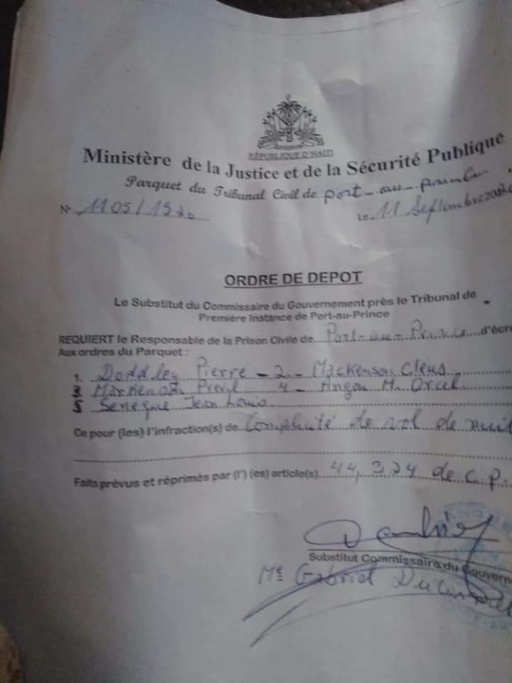 Vendredi 11 septembre 2020 ((rezonodwes.com))–Rezo Nòdwès a appris vendredi soir que des policiers de l’unité départementale de la police de l’Ouest (UDMO), sont montés au créneau pour dénoncer l’arrestation « arbitraire » et l’incarcération de 5 policiers, prétendument chargés de monter la garde à l’entrée de la résidence du bâtonnier Dorval, au lendemain de son assassinat, le 28 août dernier.
