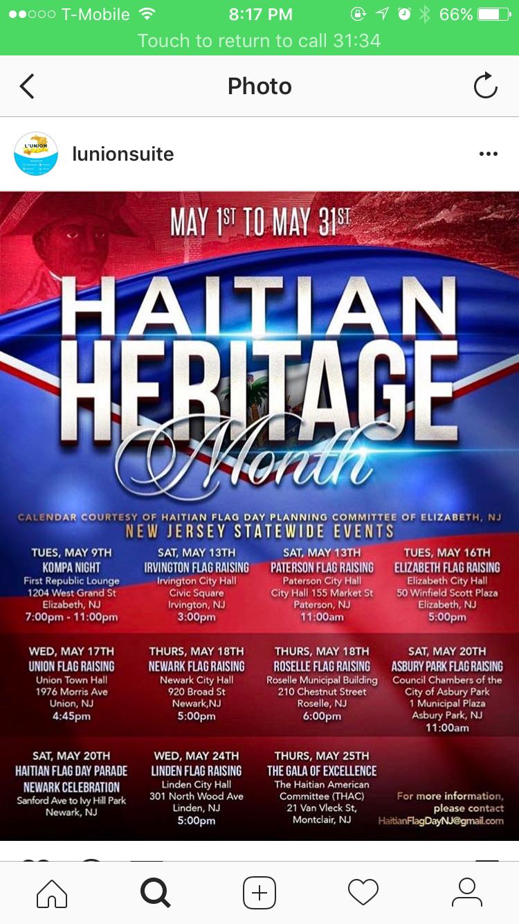 Le Bicolore haïtien flotte samedi 13 mai, simultanément sur les édifices de Irvington et de Paterson City Hall; le 16 mai à Elizabeth City Hall où se concentrent une grande partie de la diaspora; le 17 à Union Town Hall; et le clou des festivités, ce sera pour les 18 et 20 mai dans les rues de Newark, la capitale économique de New Jersey