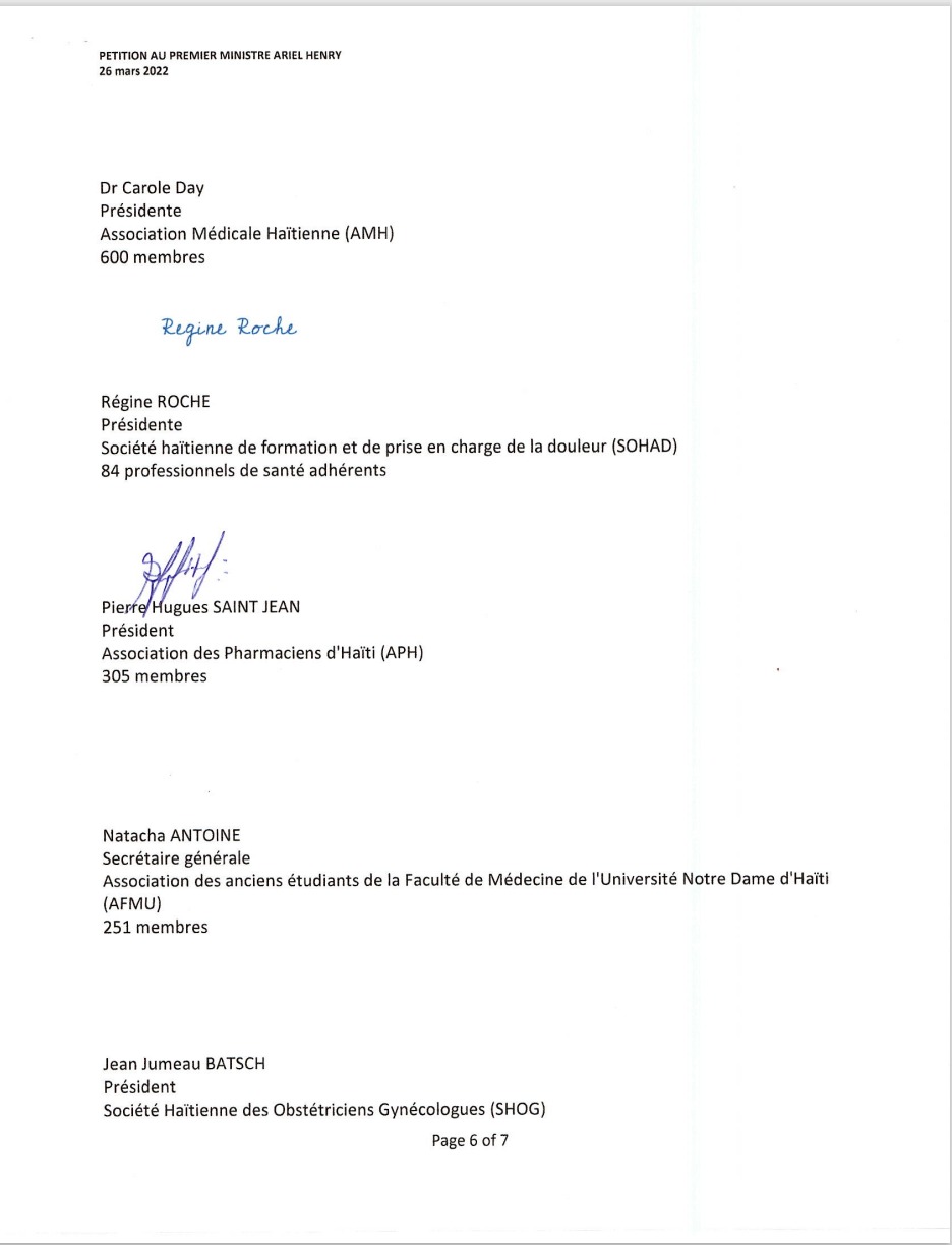 Retrouvez plus bas la « pétition adressée au Premier ministre Ariel Henry » ainsi que les noms et organisations des principaux signataires.
