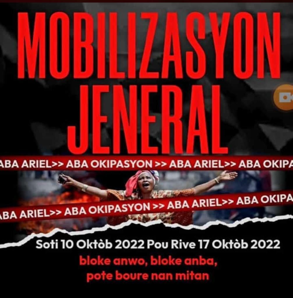 Pour dire non à l’Occupation, ce que les haïtiens en 1915 ont combattu lors de l’implantation de « la corvée », une série de mobilisation est prévue d’ici lundi matin 10 octobre sur tout le territoire national. L’objectif, selon des militants interrogés, est de « vomir à la face du monde Ariel Henry et son plan d’occupation pour faire passer le plan PHTK et l’international« .