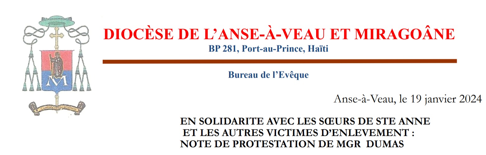 EN SOLIDARITÉ AVEC LES SŒURS DE STE ANNE ET LES AUTRES VICTIMES D’ENLÈVEMENT : NOTE DE PROTESTATION DE MGR DUMAS