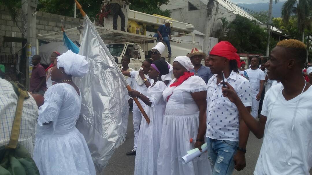 Les manifestants ont effectué le tour de la zone, de Lalue à l’avenue Magny, pour aboutir dans le voisinage de la Faculté d’Ethnologie. Les vodouisants ont accompagné leur mouvement de chants et ont fait de chacun des sept carrefours sélectionnés une station dans le but de porter plainte aux loas contre Jovenel Moise.
