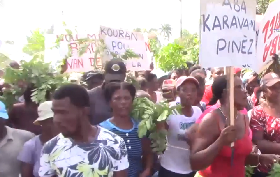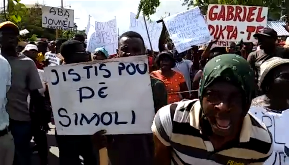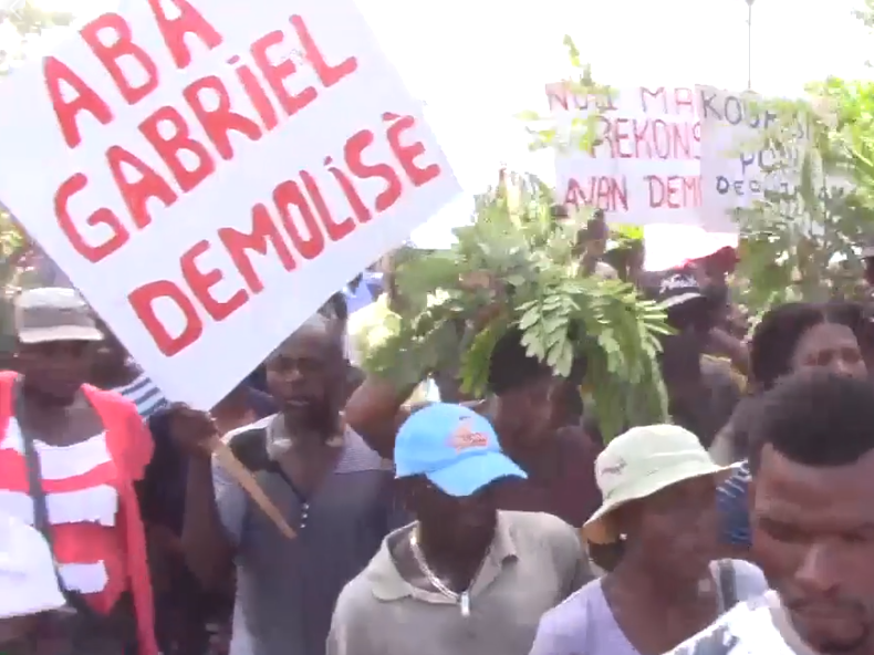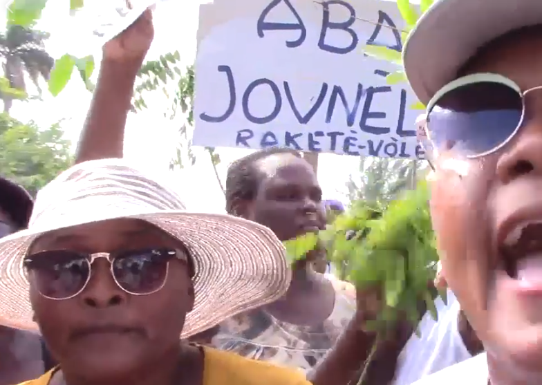 « Jistis pou Pe Simoli », « Aba Jovnel rakete », « Aba Gabriel Demolise », « Revolisyon », ont été les principales pancartes arborées durant ce mouvement de protestation.