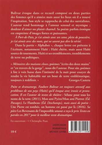Faubert Bolivar plongé dans un style frôlant le surréalisme, raconte dans ce recueil composé en deux parties, certaines des femmes qu’il a aimées mais aussi les lieux, ces maisons fermées, dans lesquels il a trouvé l’inspiration. Précision, ici il ne s’agit pas, comme on pourrait l’imaginer, des maisons closes, avec leurs filles de joie, comme il en existe autant à Pétion-Ville actuellement. Misère ou chômage accru oblige.