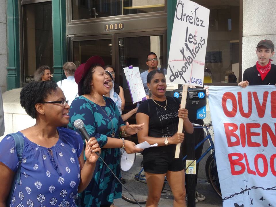 Dimanche 5 août 2018 ((rezonodwes.com))– A l’appel de l’organisation « Solidarité sans frontières », des résidents de la région de Montréal se sont rassemblés, samedi, devant les bureaux de l’Agence des Services Frontaliers du Canada au 1010 St-Antoine, pour exiger un moratoire immédiat sur les déportations vers Haïti.